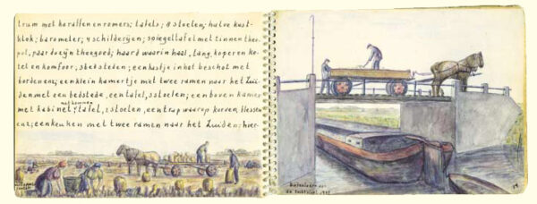 • De oorspronkelijke, liggende maten van de schets-/notitieboekjes zijn 13 x 18 cm. Voor de leesbaarheid zijn de originelen ca. 15% vergroot en worden de complete bladzijden vrijstaand gereproduceerd op een groter