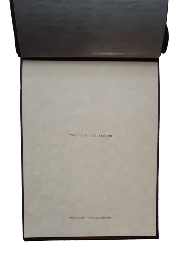 De lederen omslagen zijn van verschillende donkere kleuren. Van de uitgave zijn eenmalig twaalf exemplaren gemaakt, die genummerd en gesigneerd zijn door Dianne Bakker.