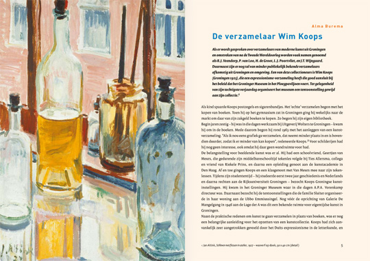 Alma Burema schrijft in een artikel over de persoonlijke geschiedenis van Wim Koops als verzamelaar. Doeke Seijens en Han Steenbruggen gaan nader in op de betekenis van de collectie Koops. Van Twist vervolgt zijn voorwoord met: