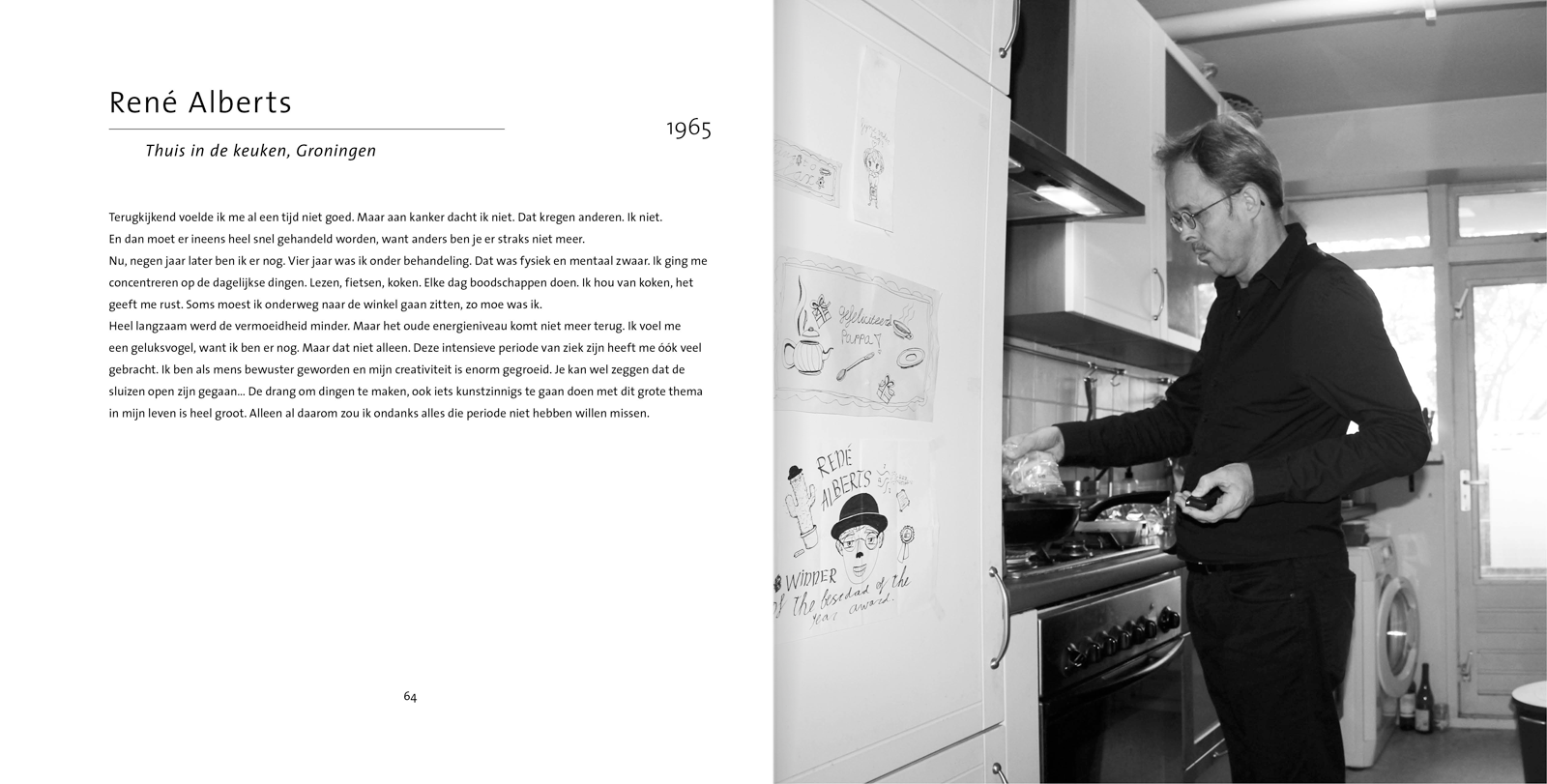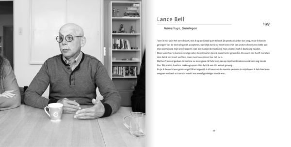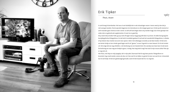 ‘Toen mij gevraagd werd een voorwoord te schrijven voor dit boek, twijfelde ik. Ten eerste omdat ik niet voor niks fotograaf ben geworden: ik ben nu eenmaal beter met beeld. Ten tweede omdat ik er eigenlijk niet weer mee geconfronteerd wilde worden, nu mijn eigen gezondheid gelukkig wat beter gaat. Weer die kankerzooi, dacht ik.