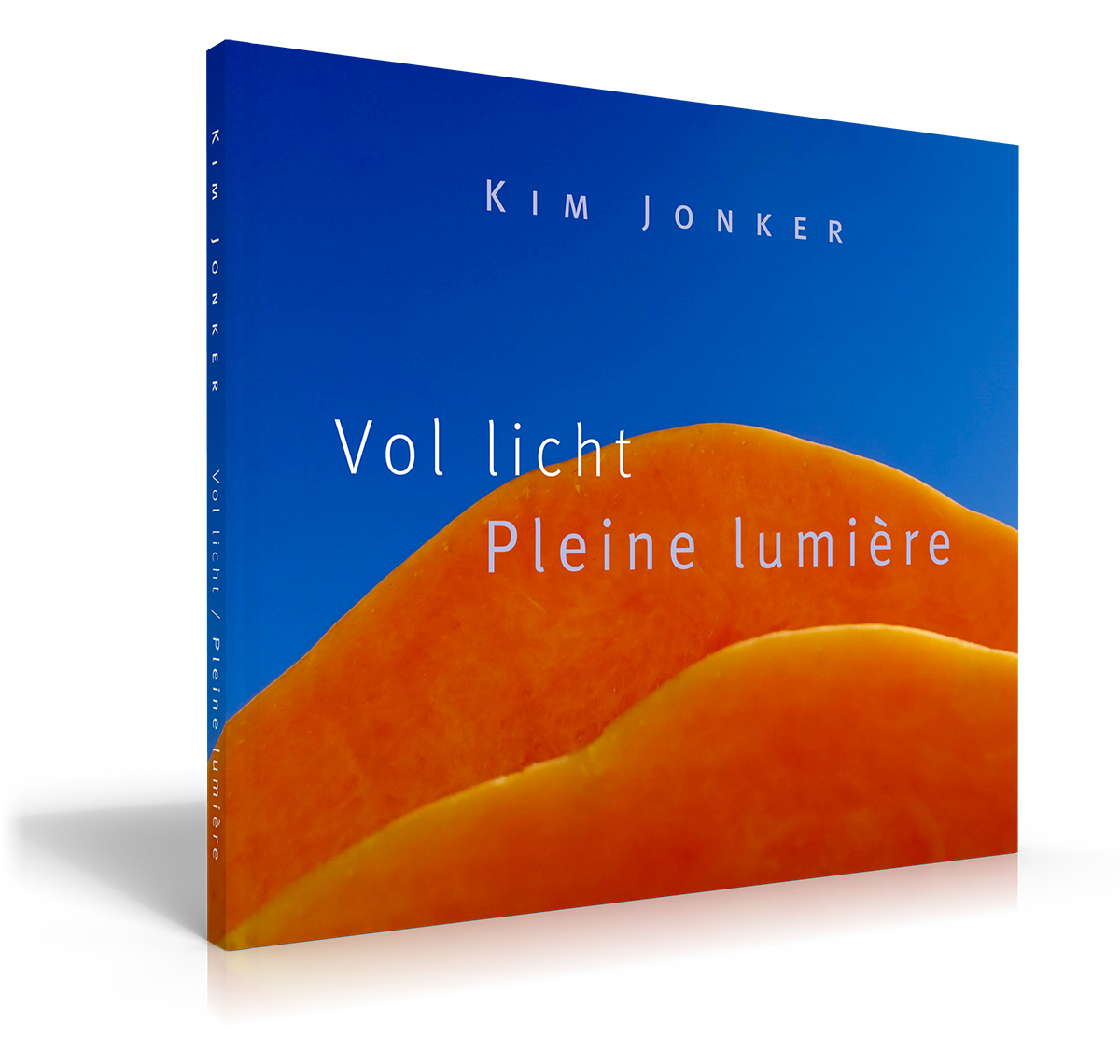 De tweetalige uitgave Vol licht / Pleine lumière van Kim Jonker is een genaaid gebonden boek met een hardcover, heeft een liggend formaat van ca 21x 24,5 cm en telt 60 pagina’s binnenwerk, gedrukt op 135 grams licht getint 1.3 opdikkend zijdemat mc en verscheen in een eerste oplage van 450 exemplaren. Het boek is te bestellen via de website van uitgeverij Philip Elchers.
