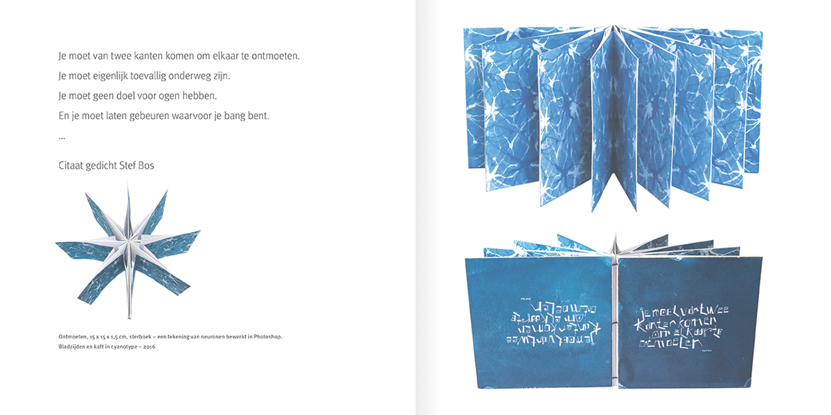 Voor een kunstverzamelaar maakte zij een uniek kunstwerk-in-boekvorm in verschillende grafische technieken ter gelegenheid van zijn pensionering. Een boek waarvan geen oplage werd gemaakt, maar dat door deze bescheiden mini-uitgave toch in te zien is voor een groter publiek.